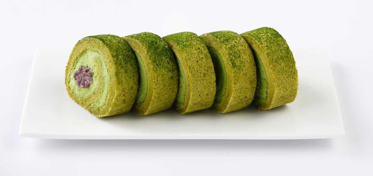 そこに、北海道産あずきのやさしい甘さのあんこと、口どけなめらかな抹茶クリームをたっぷりと巻き込みました。